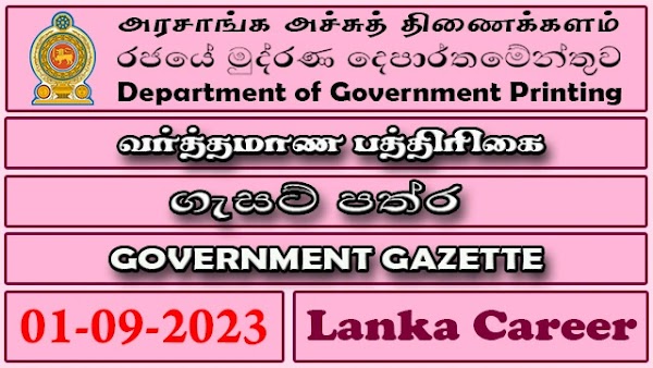 Stay updated with the latest Sri Lanka Government Gazette on 01-09-2023, covering important announcements and official notifications.